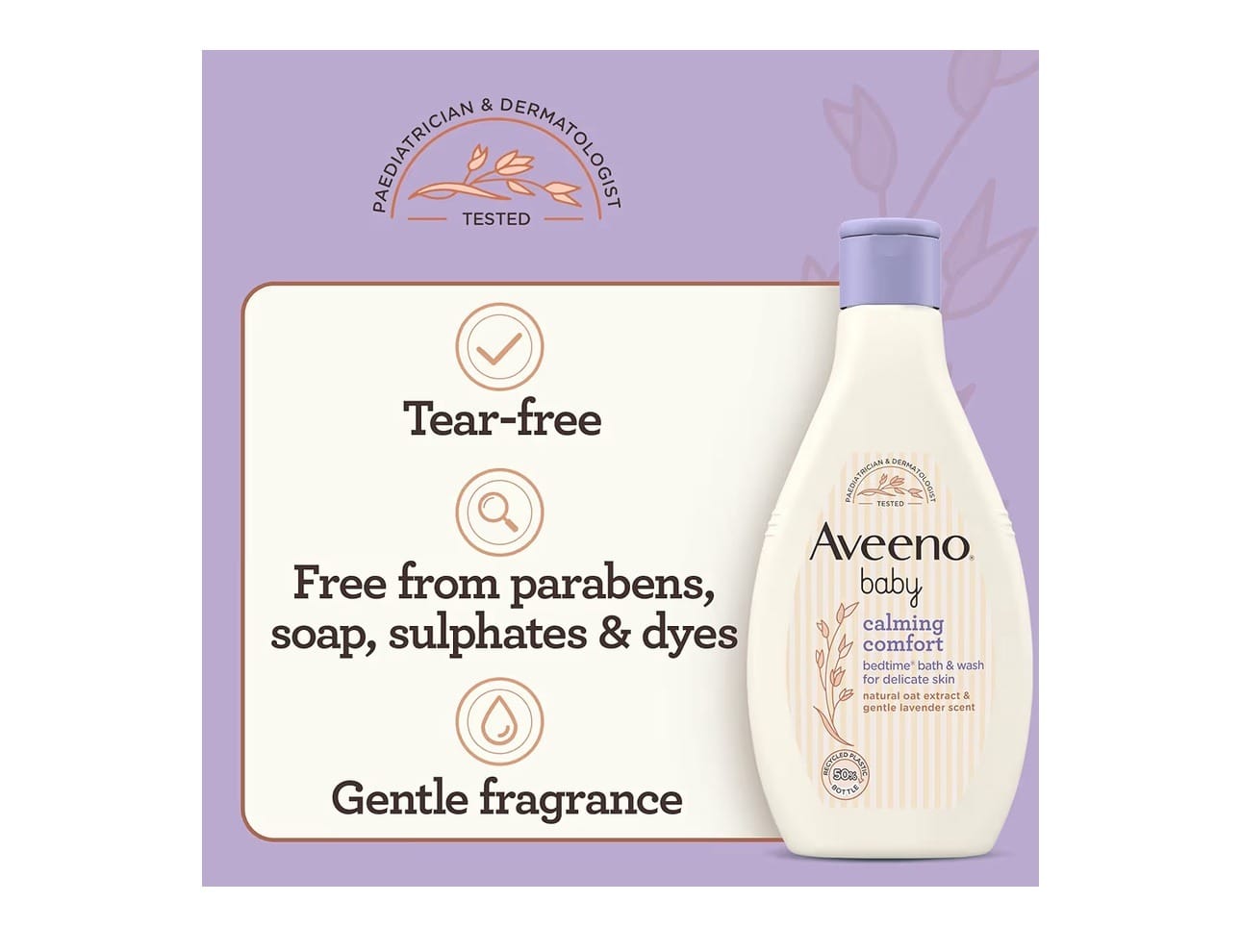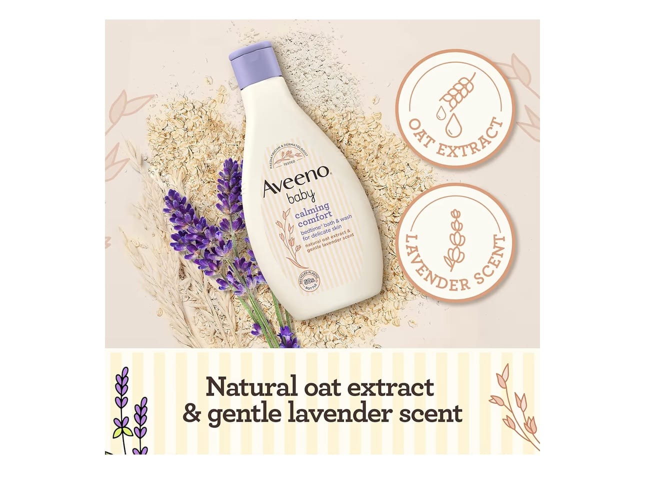 Aveeno Baby Calming Comfort Bedtime Bath & Wash is a gentle, soothing formula created to help your little one relax before bedtime. Infused with a soft lavender and vanilla scent, this calming wash is designed to comfort babies with delicate and sensitive skin. It gently cleanses without drying and leaves the skin feeling soft, smooth, and moisturized.