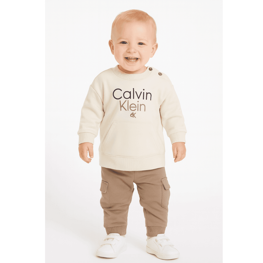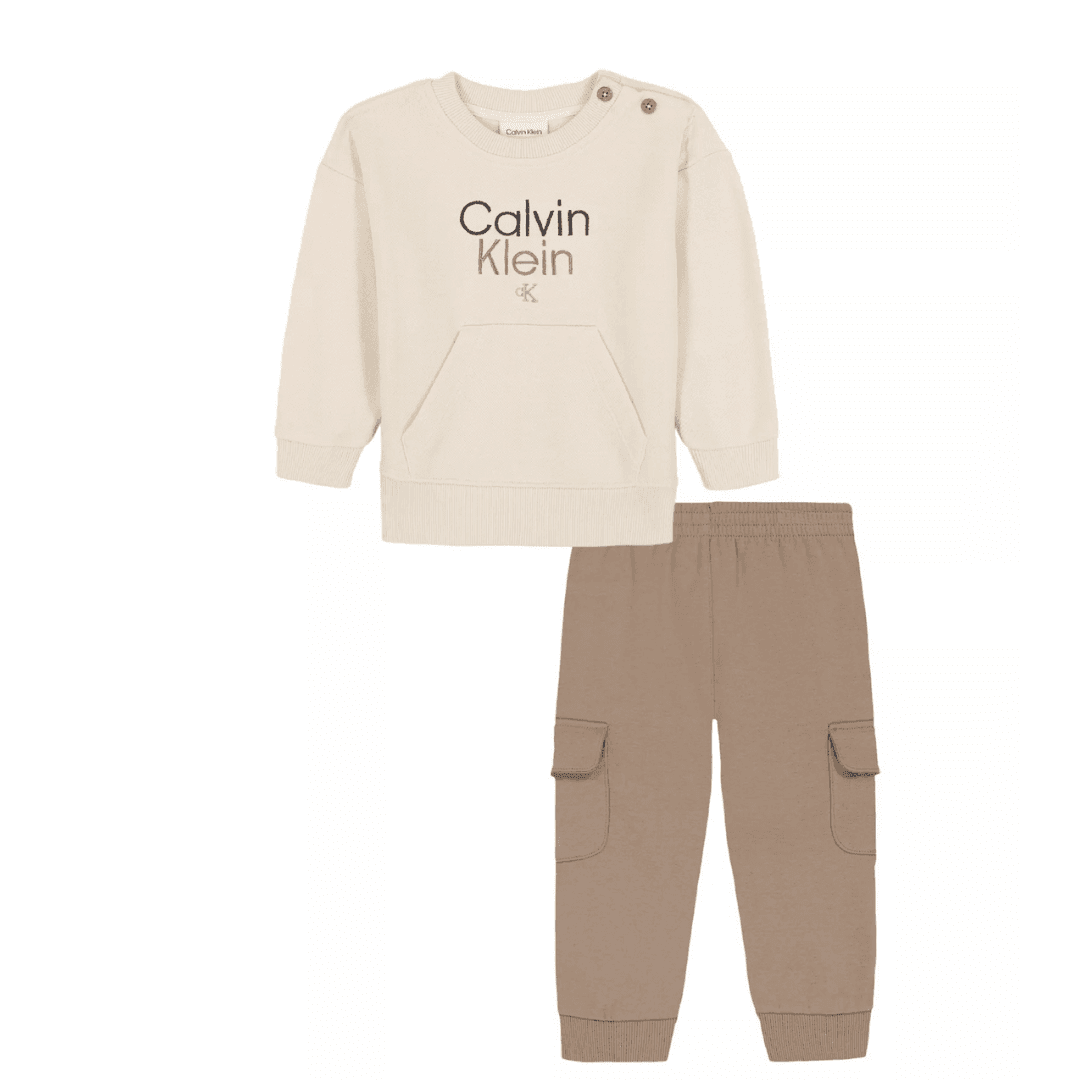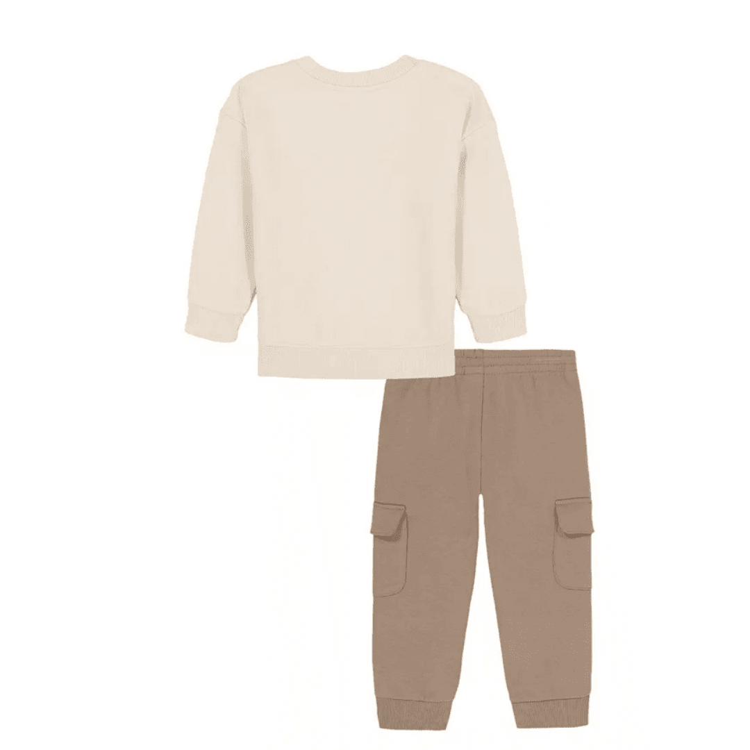 Made with drop shoulders for easy comfort, this fleece crewneck features side slits at the hem for free movement. Easy pull-on joggers complete the cozy ensemble. Size for 12M baby