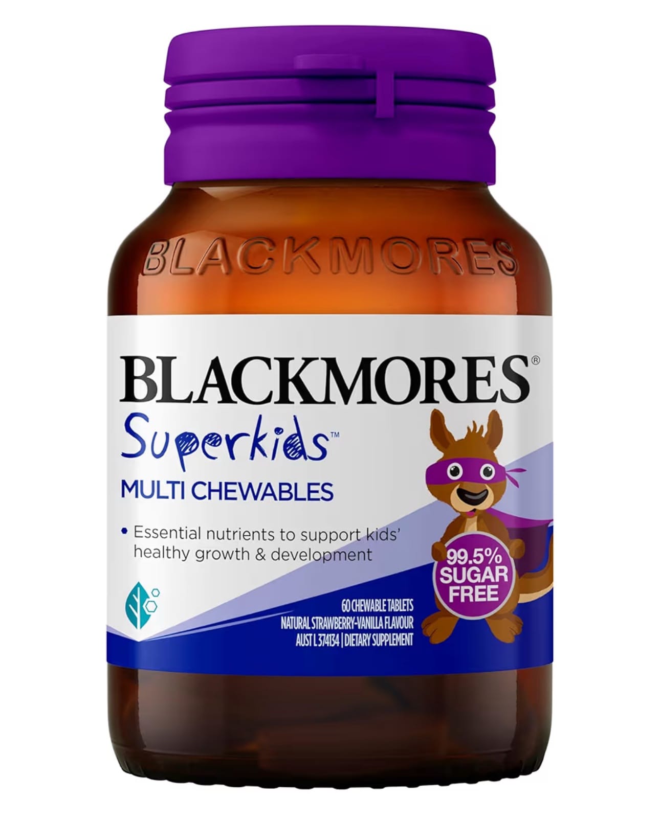 Blackmores Superkids Multi Chewables provide a broad range of essential vitamins and minerals to support your child’s healthy growth, development, and overall wellbeing—perfect for picky eaters and busy school days.