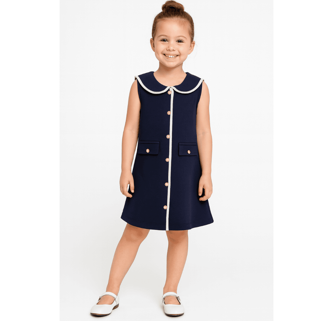 Peter Pan Collar: The crisp white Peter Pan collar adds a classic, sweet touch that instantly elevates the dress, giving it a polished and graceful look.