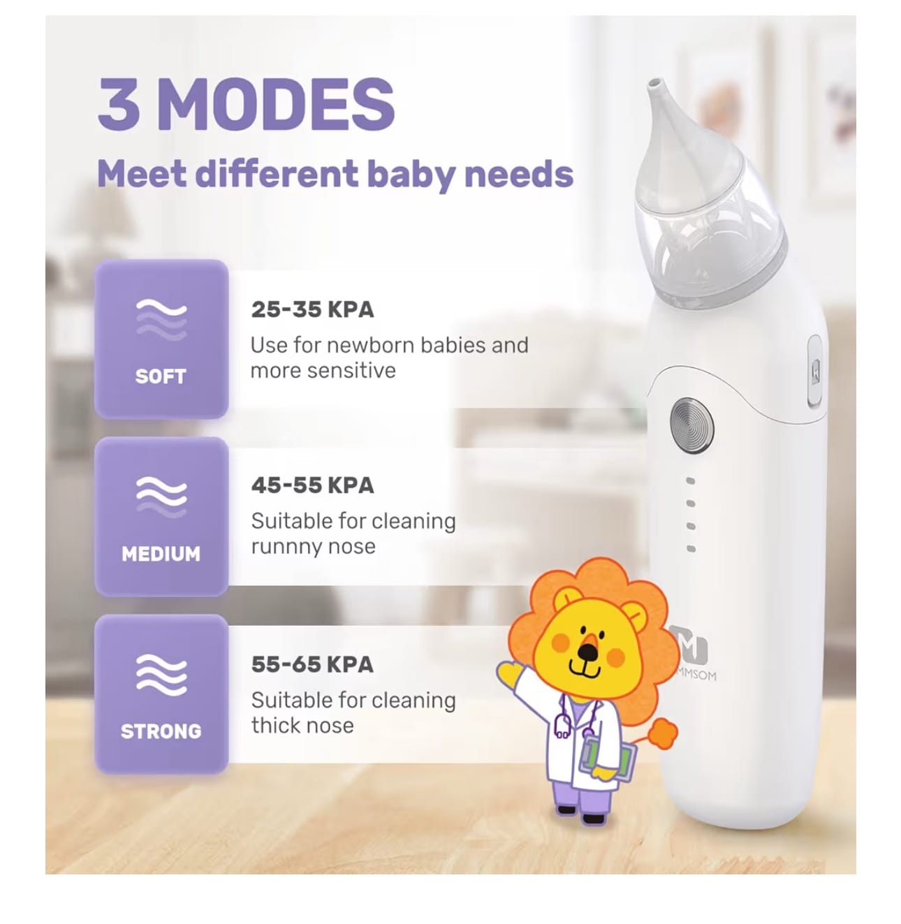 - Gentle yet powerful suction for effective mucus removal