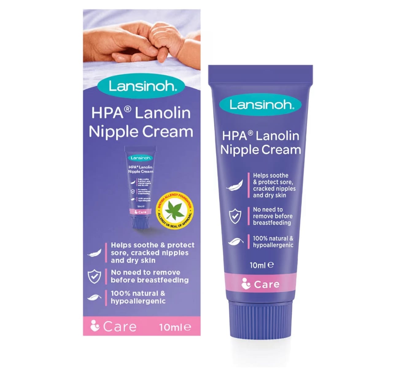 Its hypoallergenic and preservative-free formula is safe for both mom and baby and does not need to be removed before breastfeeding. The convenient 10 ml size is perfect for hospital bags, travel, and on-the-go use.