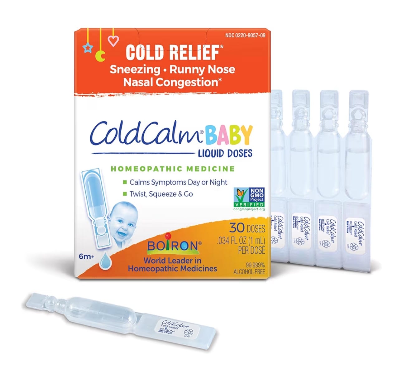 Boiron ColdCalm Baby is a homeopathic liquid formula designed to help relieve common cold symptoms in babies, including sneezing, runny nose, and nasal congestion.
