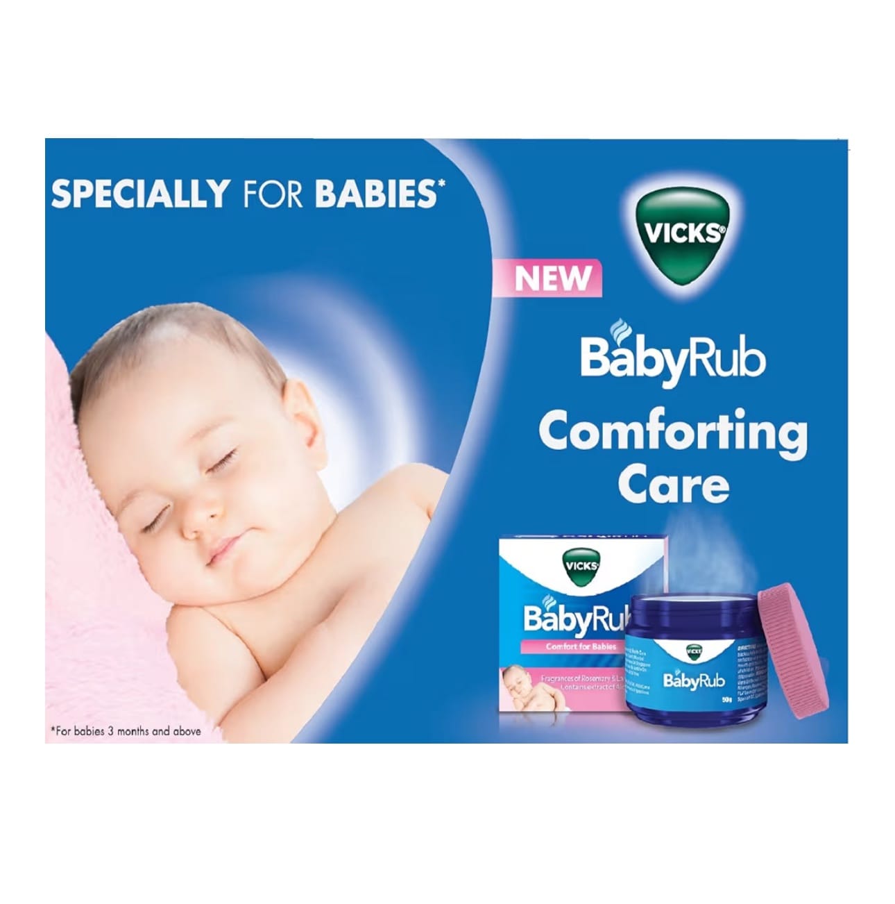 Vicks BabyBalsam is a gentle, soothing rub specially formulated to comfort babies during cold, stuffy, or restless days. Enriched with aloe vera and coconut oil, it helps moisturize delicate skin while releasing calming fragrances of lavender and rosemary to promote relaxation and easier breathing.
